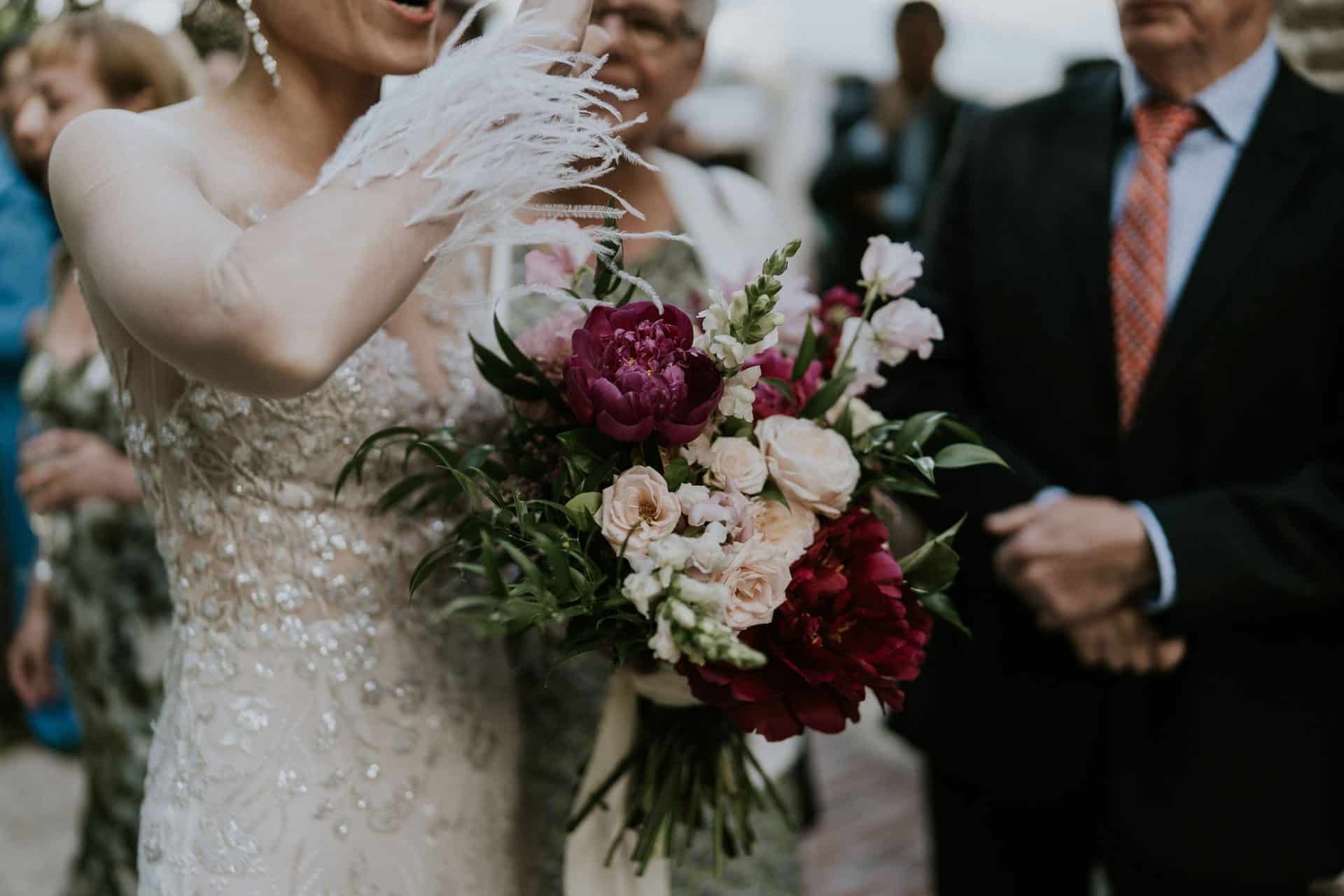 Le souhait des mariés était d’offrir un moment fluide et élégant avec un décoration florale légère et la nature comme décor principal.