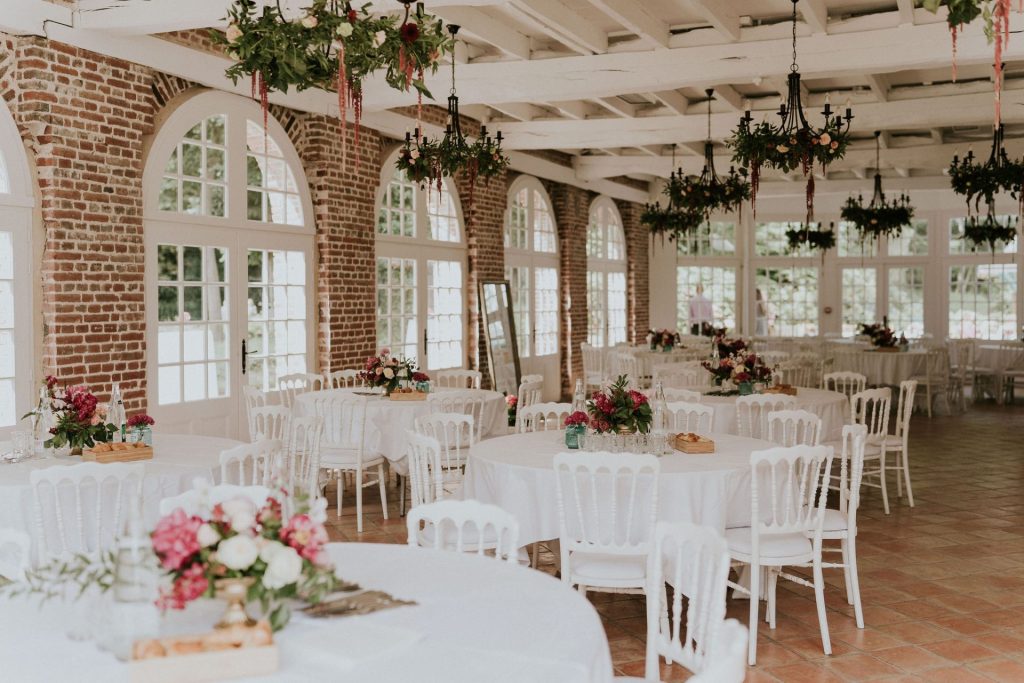 Les invités sont installés autour de tables rondes, sur des chaises Napoléon